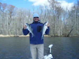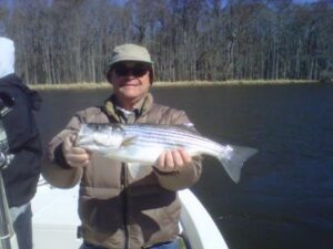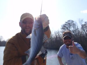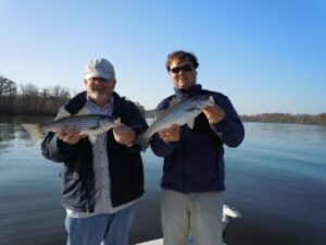 Had the pleasure of carrying Amy and Eric Butler today. We caught about 20 stripers today in some tough conditions. Dominion Power has been